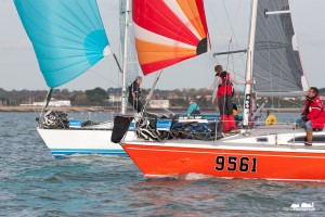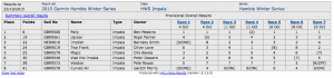 Depite the gloomy weather forecasts, the 8 Impalas racing in the Garmin Hamble Winter Series got a race in yesterday – after a few hours under AP in the blazing sunshine.